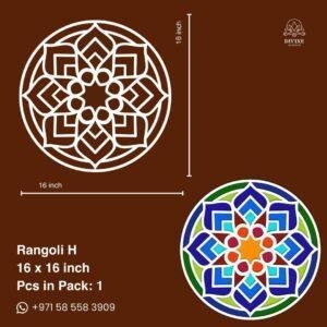 Decorate your homes exquisitely through Rangoli designs effortlessly with our Rangoli Design Boards made from premium MDF material. With 2 size options to choose from, Measuring 12″ x 12″ & 16″ x 16″, these design boards are perfect for adding a touch of tradition and creativity to your home during festive occasions like Diwali, Navratri, and other Hindu festivals. Designed with laser-cut precision, these boards ensure that your Rangoli is flawless and beautifully symmetrical, making them perfect for your home aesthetics.