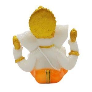 Divine Ganesha Statue | White and Orange | 4 Inches