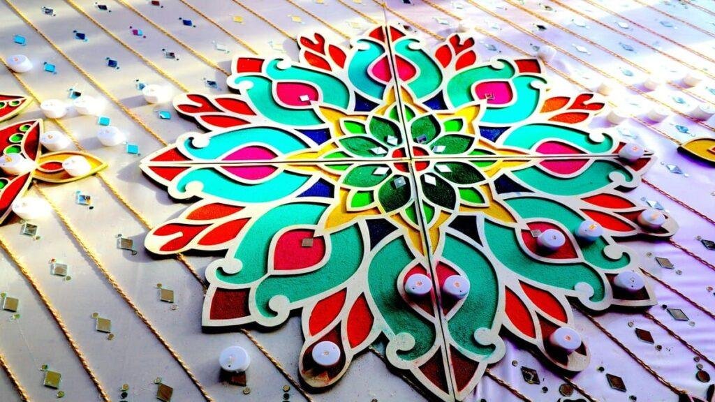 In India’s customs, colors have always been extremely important. A type of folk art from Indian traditions is called “rangoli.” A creative way of expressing craftsmanship using a variety of components is implied by the Sanskrit term “rangoli.” In ancient times, rangolis were a common decorative element; nonetheless, their allure endures in contemporary times. In India, traditional decorations are still utilized for a variety of festivals and special events, including as weddings and birth rituals, as well as holidays like Diwali, Ganesh-Utsav, and Navratri.